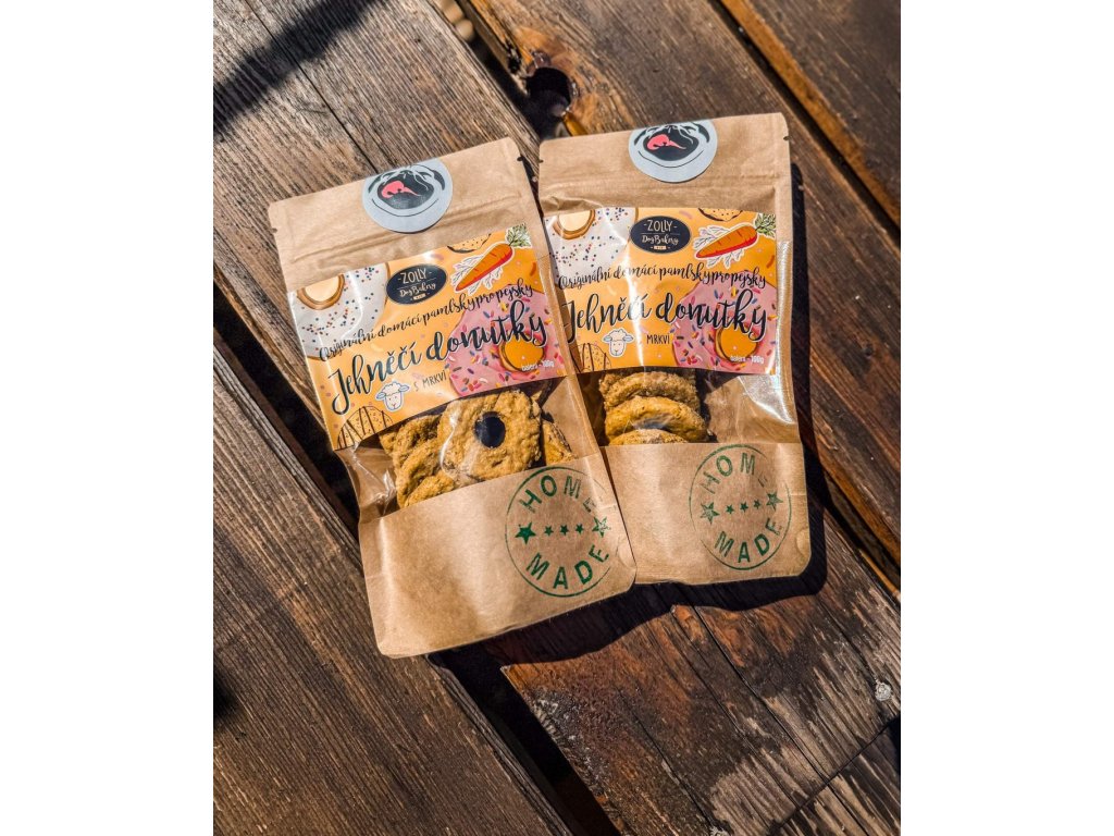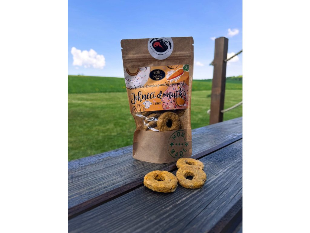 Víte, co se stane, když se potká jemné jehněčí maso s křupavou sladkostí mrkve? Vznikne malý, voňavý zázrak ve tvaru donutku, který váš pes prostě nemůže odmítnout. Tahle kombinace je nejen lahodná, ale i šetrná k bříšku – ideální pro citlivé psí gurmány. Jsou skvělé jako zdravá odměna během dne – snadno stravitelné, křehké a plné přírodních surovin bez chemie.