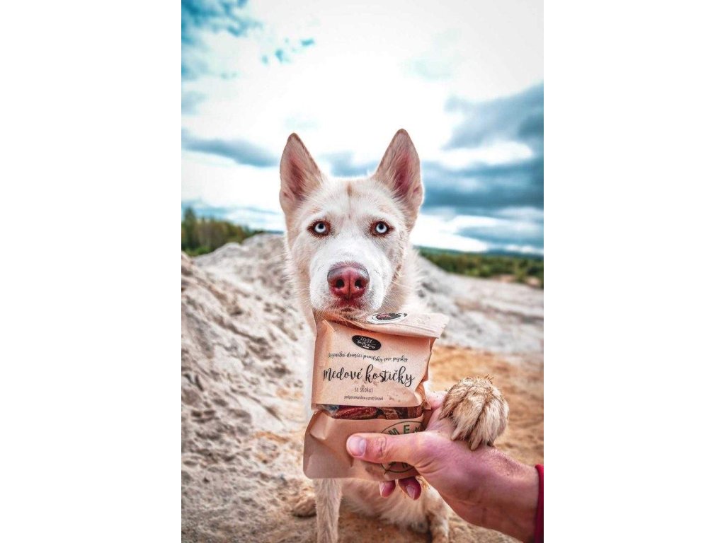 Křehké mini medové kostičky si skutečně zamilujete! Jsou připravované z ovesné mouky, medu a špetky skořice – jednoduché složení, které potěší chuťové buňky i citlivější psí bříška. Jsou skvělé jako drobná odměna při tréninku nebo jen tak pro psí oči. Vše bez chemie, bez konzervantů a umělých barviv – zkrátka láska v každém soustu!