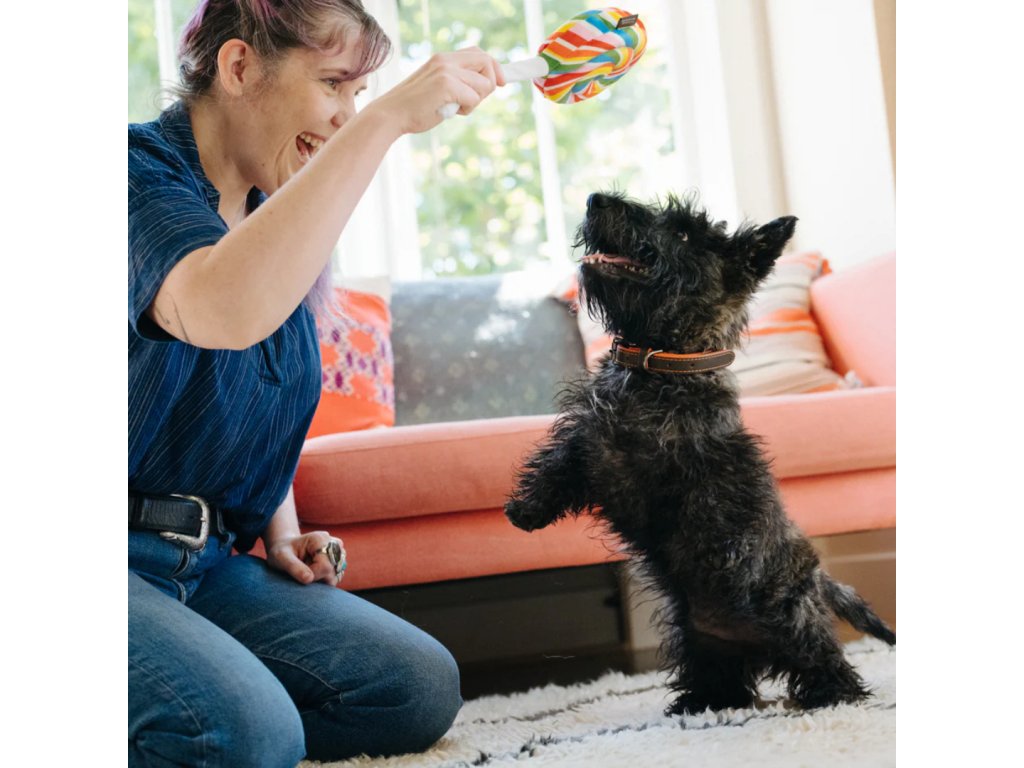 Plyšové lízátko Pet Play je originální hračka pro psa, která zabaví tvého chlupáče při kousání, aportování i společném hraní. Měkký materiál je příjemný pro psí zuby a díky hravému designu se rychle stane oblíbeným parťákem na hraní.